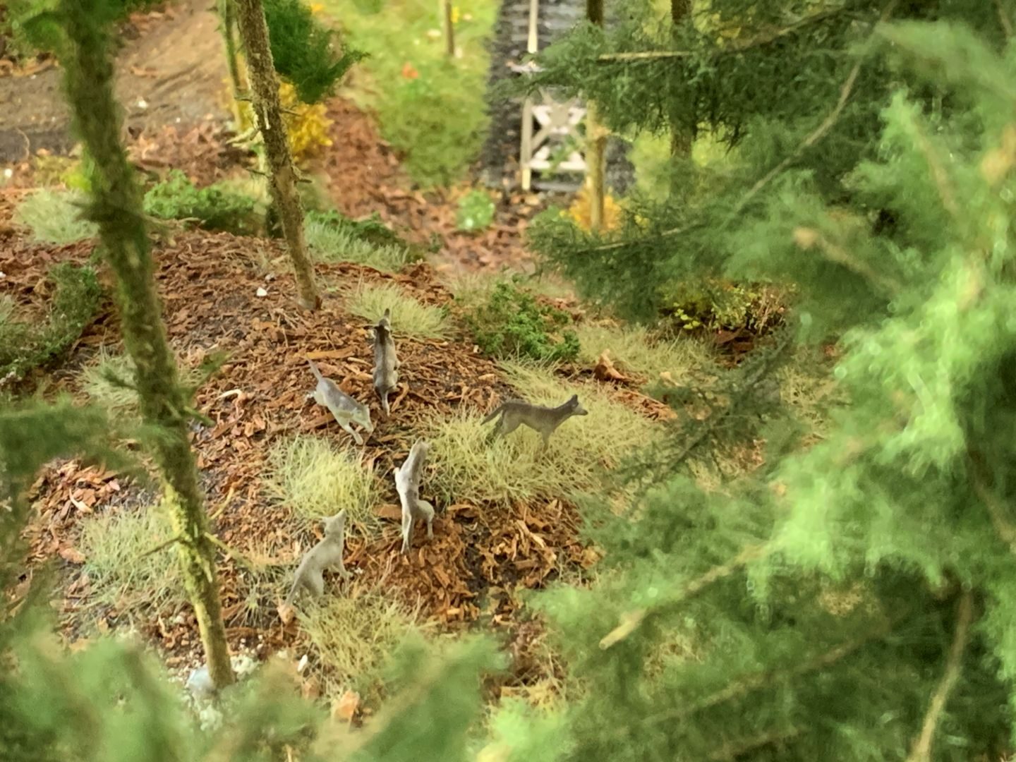 In unserem Großen Wald, der übrigens aus über 70 eigenhändig erstellten Fichten besteht, hat sich z.B. ein kleines Wolfsrudel versteckt.