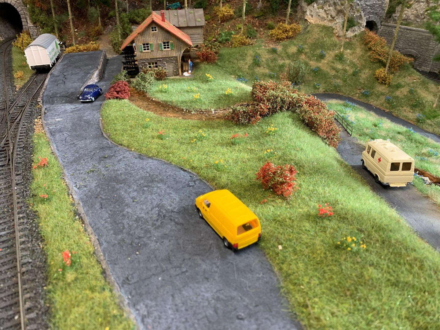 Und damit die kleine Anlage (1x2m) nicht zu schnell langweilig wird gibt es noch so einige kleine Szenen zu entdecken. Man muss nur genau hinschauen.