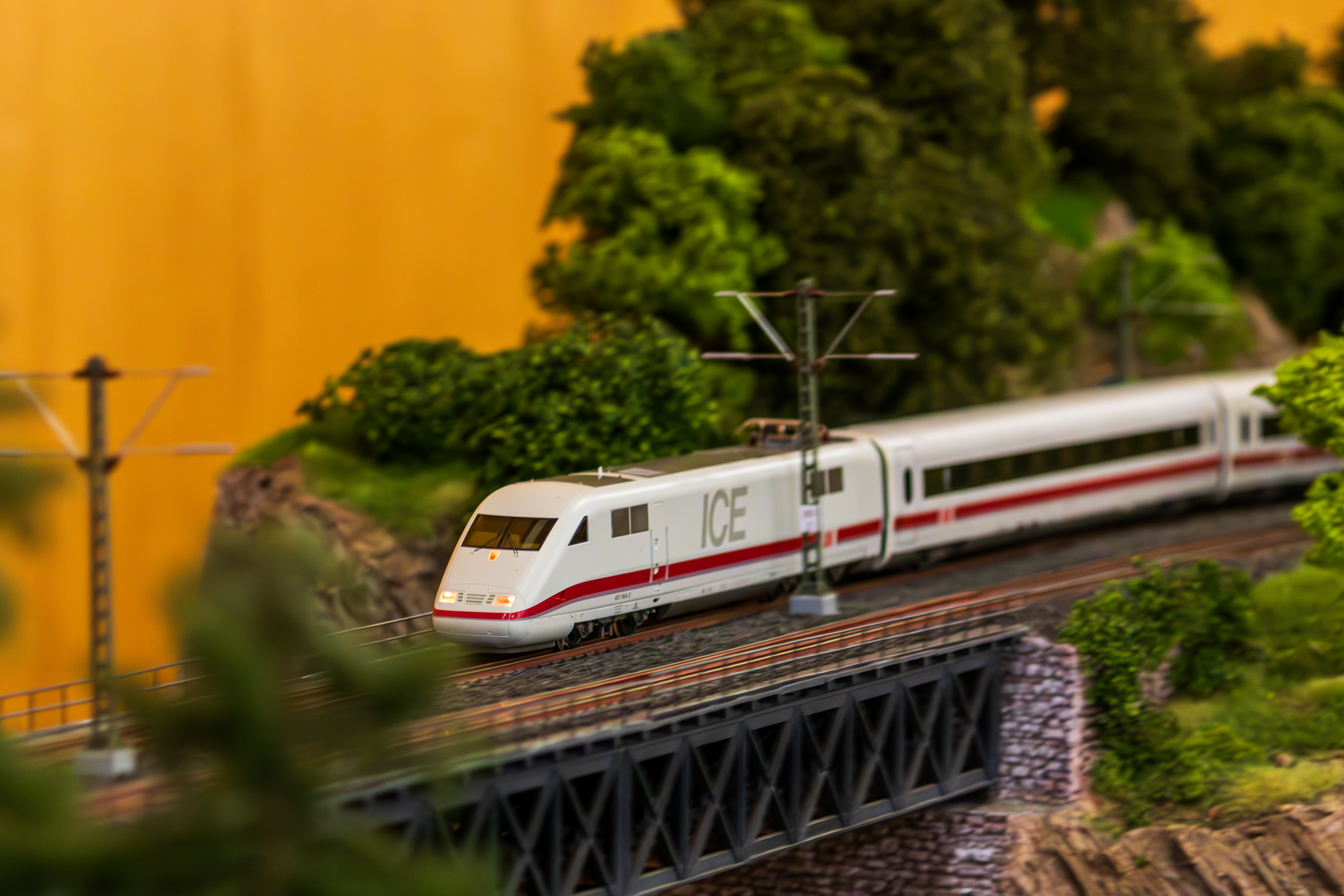Beide langen ICE-1 Triebköpfe der langen Züge sind von Fleischmann. Aufgrund der Länge fährt der ICE 1 auf unserer Anlage mit maximal 10 Mittelwagen. Beide Züge werden mit einem ESU LokPilot 5 digital gesteuert. Der ICE-S ist ein überarbeitetes Roco-Modell.