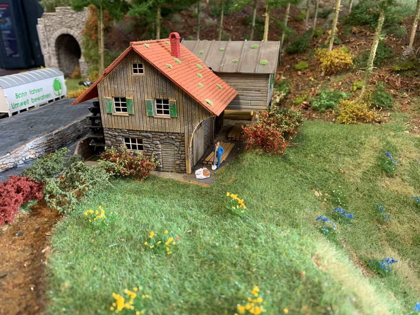 Und damit die kleine Anlage (1x2m) nicht zu schnell langweilig wird gibt es noch so einige kleine Szenen zu entdecken. Man muss nur genau hinschauen.